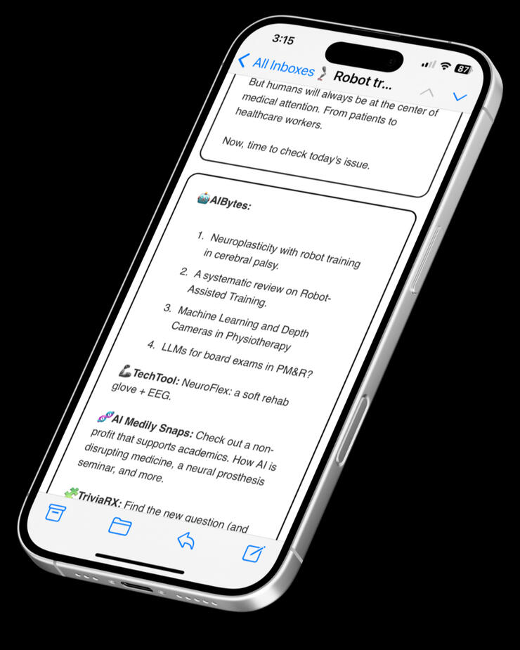 Every week, I spend 30+ hours curating research, AI tools, and news on AI in Rehabilitation Medicine and LLMs, so you don't have to.Don't fall behind on how AI is reshaping medicine - get concise, easy-to-read updates.Delivered twice a week (under 5 min). Written by a physician for clinicians.